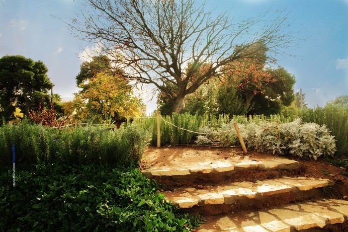 Με το που περάσεις την είσοδο στον χώρο δεσπόζει ένας μικρός λόφος. Πάνω του, μία γκορτσιά (άγρια αχλαδιά) απλώνει τρυφερά τον ίσκιο της σε ένα ξύλινο τραπέζι πικ νικ, ένα ποδήλατο ντυμένο με αληθινά λουλούδια κι έναν συμπαθητικό διακοσμητικό νάνο που σου δίνει την αίσθηση πως τα βράδια ζωντανεύει για να σπείρει αστερόσκονη στα παρτέρια τριγύρω…